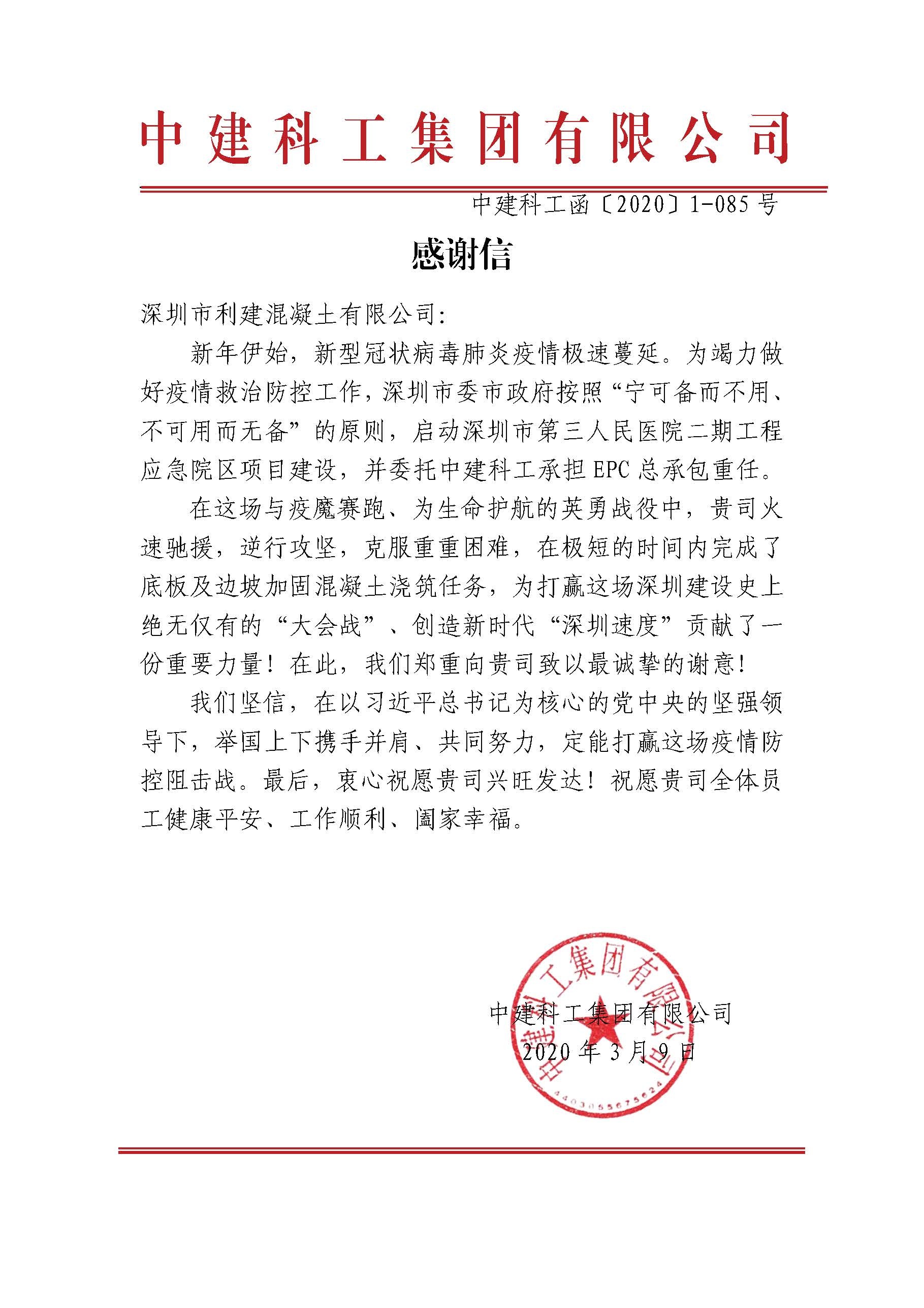 今年2月以来,新型冠状病毒肺炎疫情肆虐全国。疫情当前,汇基集团逆流而行、快速响应、勇于承担企业社会责任,组织深圳市利建混凝土有限公司精干力量,积极参与深圳市第三人民医院二期工程应急院项目建设,高标准完成了建设任务,受到了项目总承包单位——中建科工集团有限公司的高度肯定和诚挚感谢。