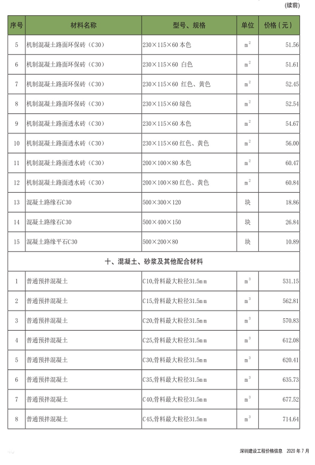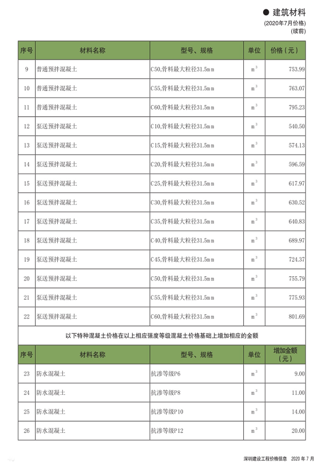 2020年7月份信息价