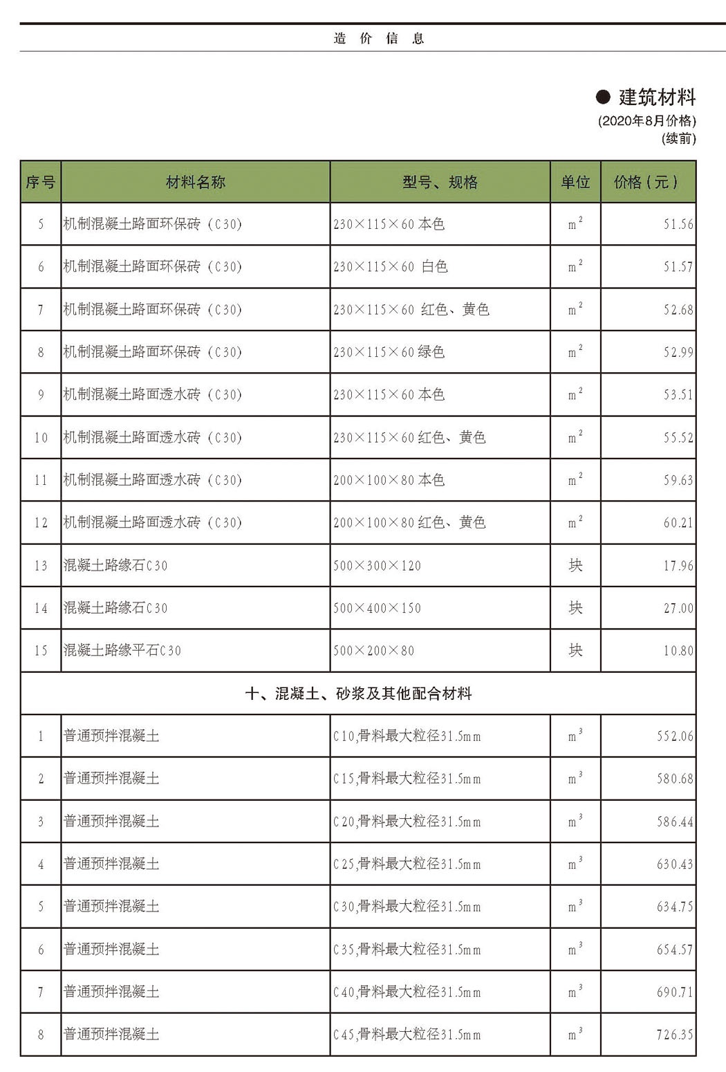 2020年8月份信息价