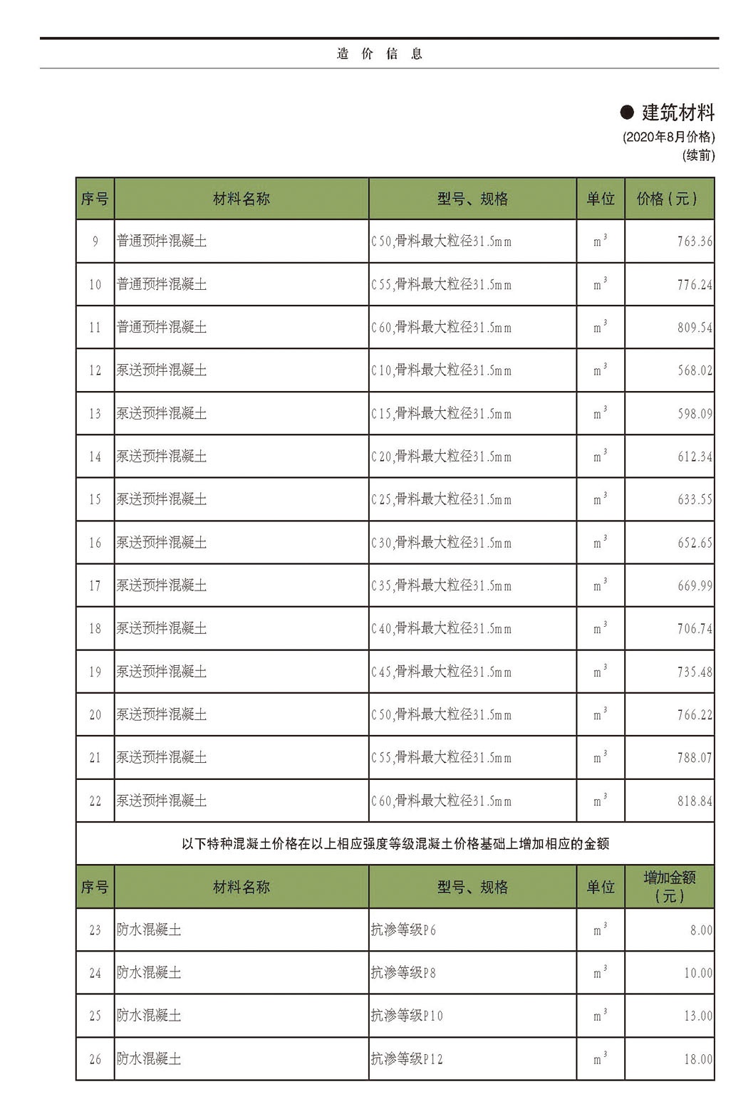 2020年9月份信息价