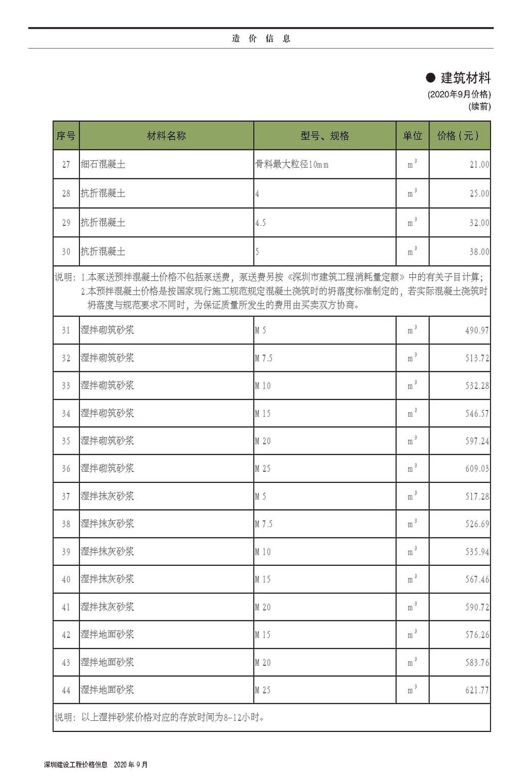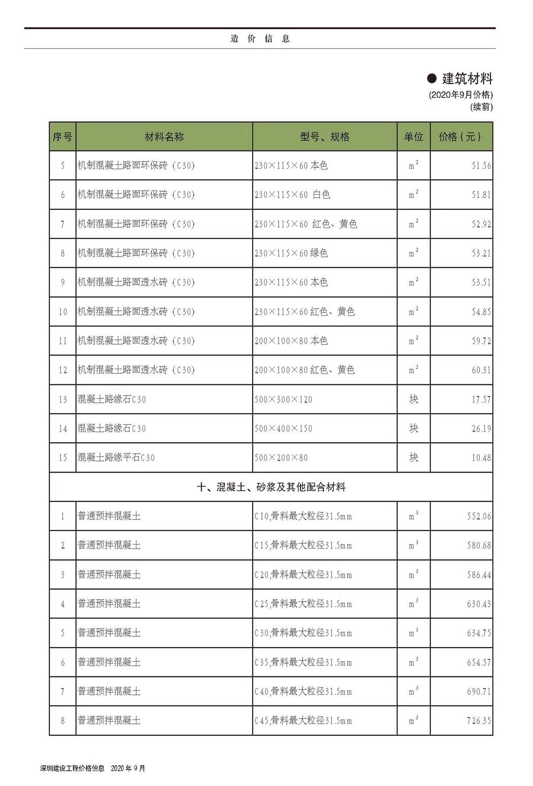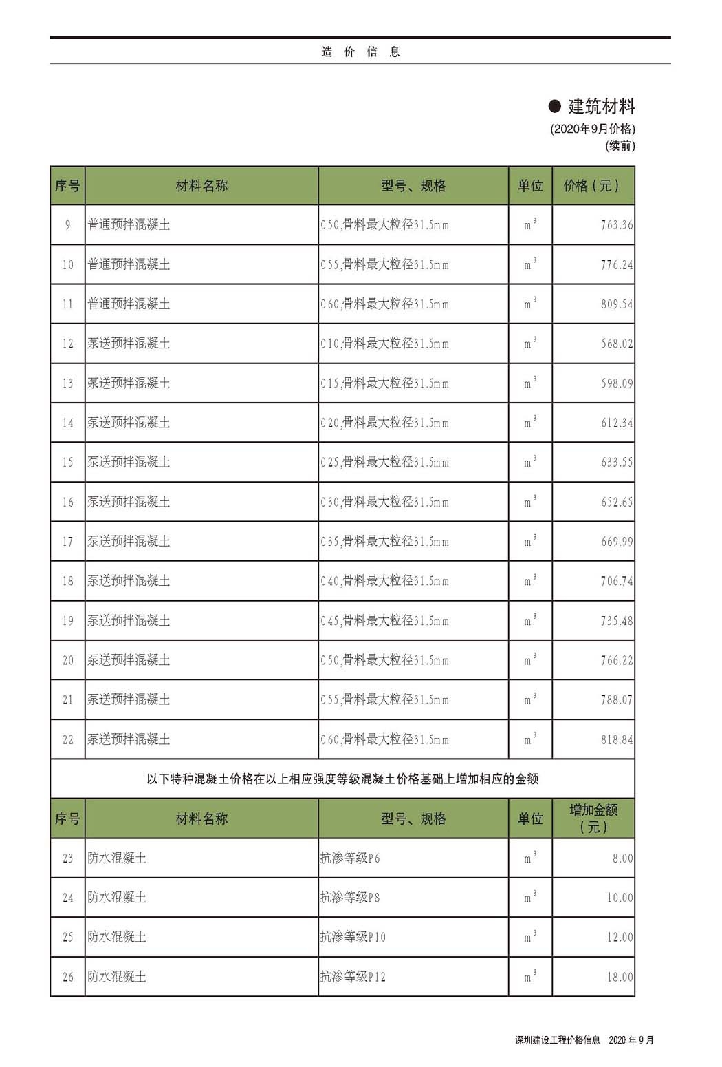 2020年9月份信息价