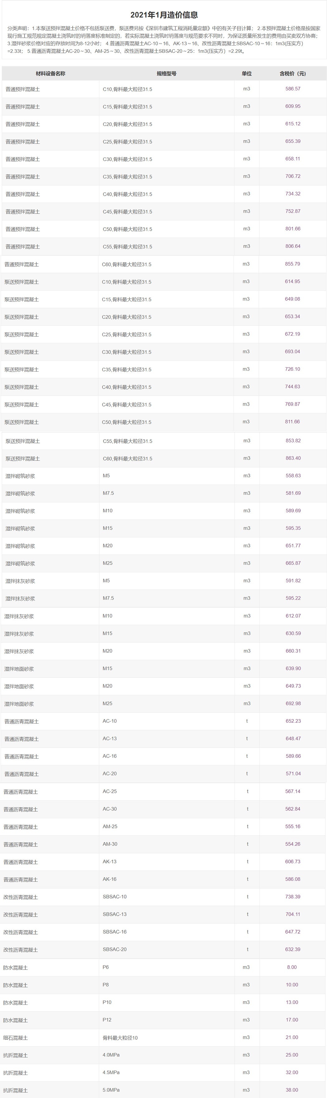 2021年1月份信息价